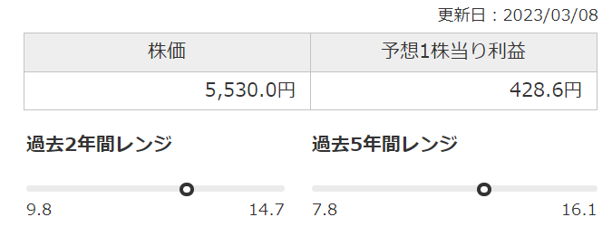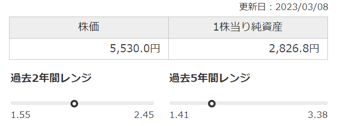 PBRだと、1.5倍くらいが妥当でしょうか。その場合は4,240円くらいですね。PERで計算した時と同じくらいの水準です。